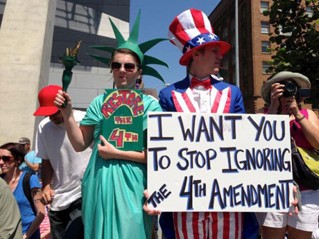 Sekitar 300 orang berkumpul di San Francisco Civic Center. Ada yang berpakaian ala Patung Liberty, atau berpenampilan khas Paman Sam. Mereka bukan sedang melakukan karnaval, tapi sedang protes terhadap program pengintai?